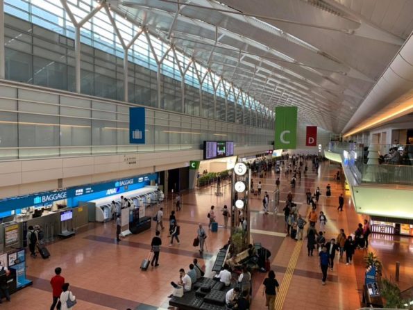 羽田空港で朝食を頬張りながら。